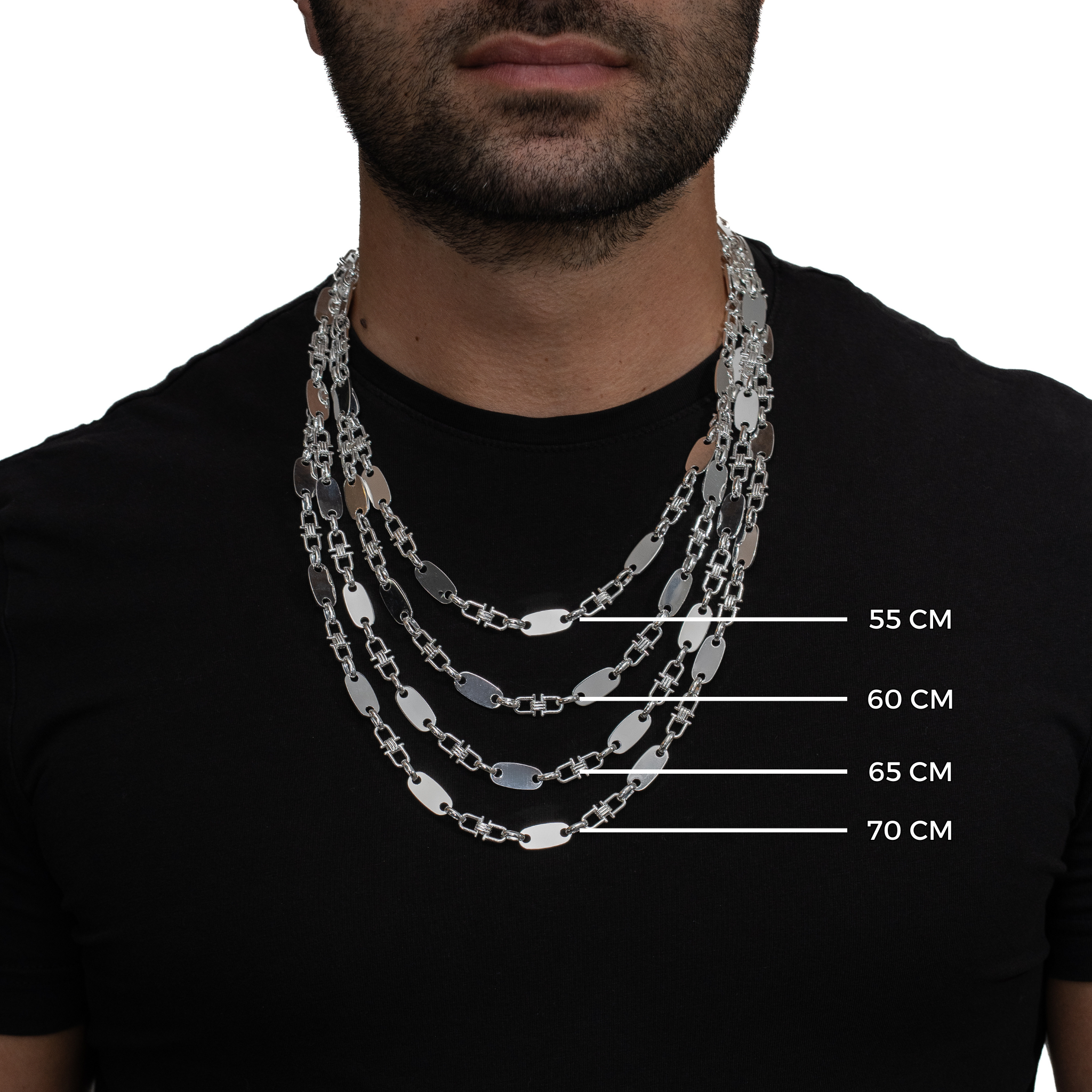 Deine Plattenkette wird handgefertigt und Zentimeter für Zentimeter poliert. Somit entsteht der beliebte Hochglanz-Effekt, wodurch jede einzelne Platte einen wunderbaren Spiegeleffekt erzeugt.